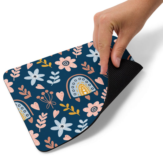 Navy Floral Rainbow Mouse pad